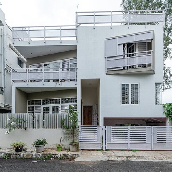 Passive strategies—stack ventilation through the stairwell, a western beer-bottle wall that tempers heat while recycling waste, and recessed balconies that shield and connect—eliminate the need for mechanical cooling. Inside, open-plan layouts and sunken levels magnify space, turning a constrained 50x56 site into an ecosystem of generosity